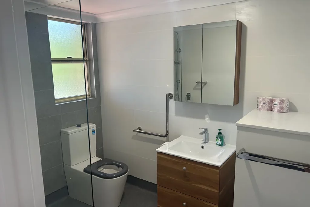 We provide photos of the finished bathrooms which highlights the quality of the bathroom fittings these include, toilet suites, towel rails ,toilet roll holders, soap holders, shower screens, taps, shower heads fixed and adjustable along with beautiful timber vanities all of which has been supplied by Highgrove Bathrooms for five of our rooms.